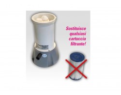 Nuova generazione di materiale filtrante in polietilene, sostituto ideale della cartuccia all'interno del filtro. Utilizzabile per tutti i gruppi filtranti delle piscine fuoriterra in commercio.