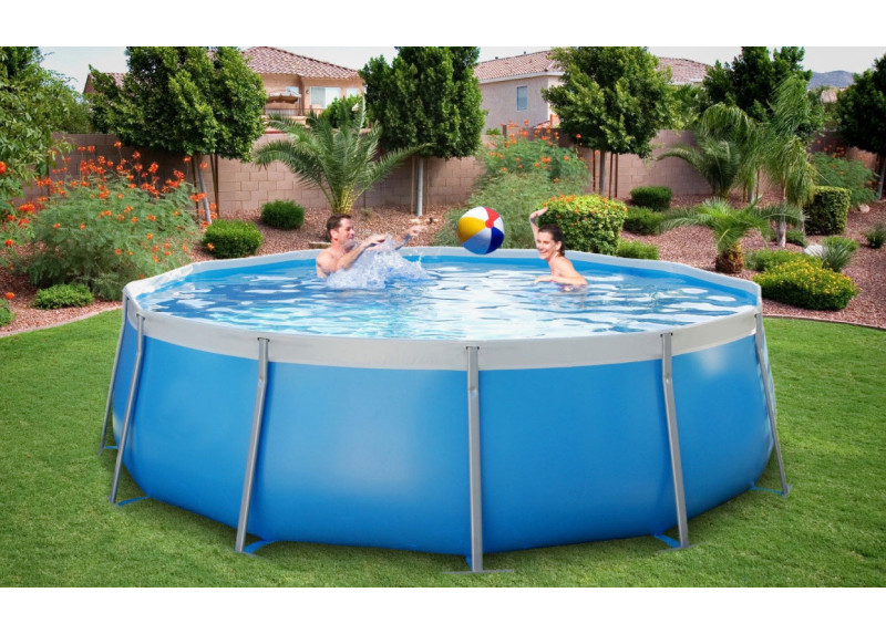 Vasca in tessuto di poliestere bispalmato trattato anti UV ed antialghe e telaio in acciaio galvanizzato e verniciato con prodotti speciali che consentono alla piscina lunghe permanenze a temperature estreme.